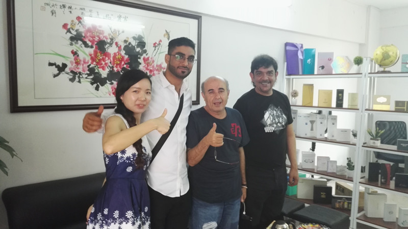 Raji, de GM van Global Perfumes Industry FZE uit de VAE, kwam in 2017 met zijn assistent onze fabriek bezoeken. Hij wilde een speciale ontworpen parfumdozen om zijn merk uniek te maken.