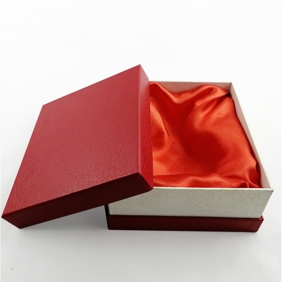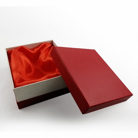 Dit is een grote, vierkante, rode geschenkdoos met deksels die van speciaal papier + 1200g grijs karton, de binnenvoering kan van rode satijnen stof zijn die past bij de kleur van de buitenkant van de doos.