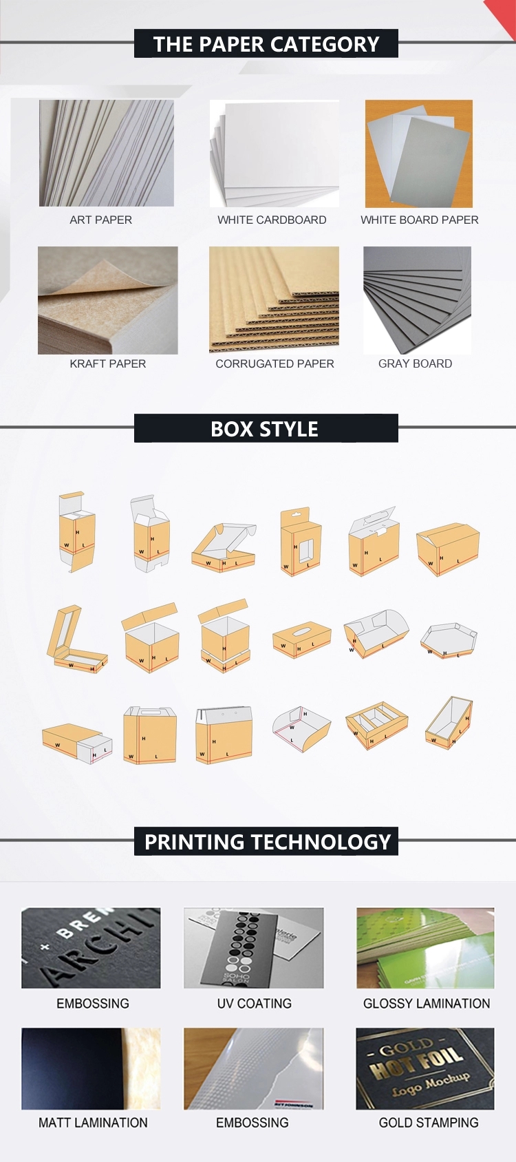 Ten tweede kan hij, afhankelijk van zijn uiterlijk, verschillende soorten fotoafdrukken, warmstempelprocessen, CMYK-afdrukken, enkelzijdige of dubbelzijdige afdrukken aanpassen en warmstempelen kan hetzelfde zijn als geschenkdozen.
