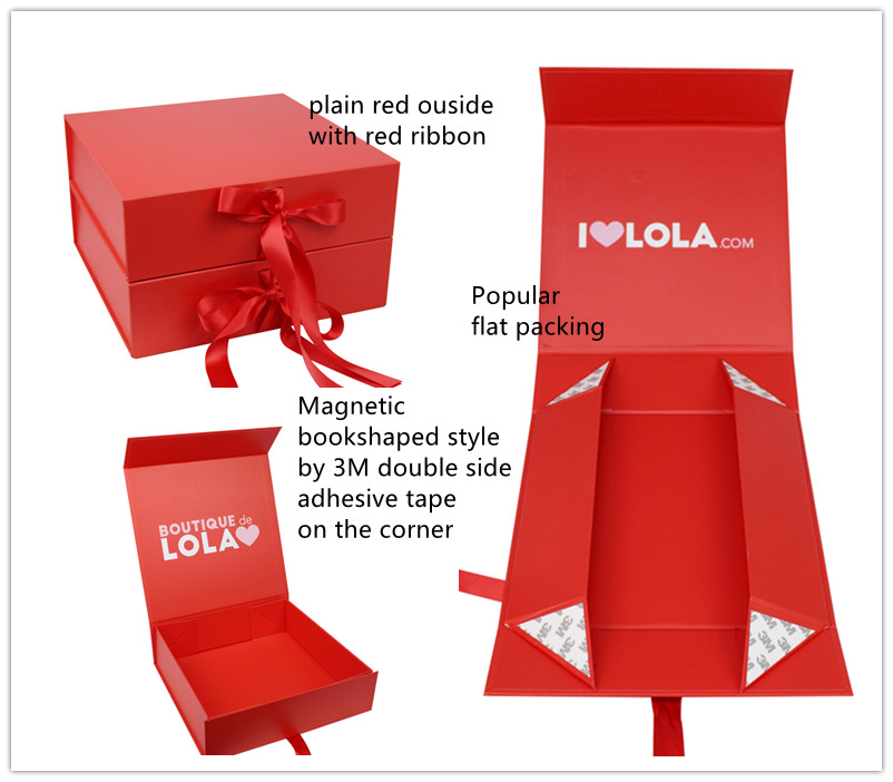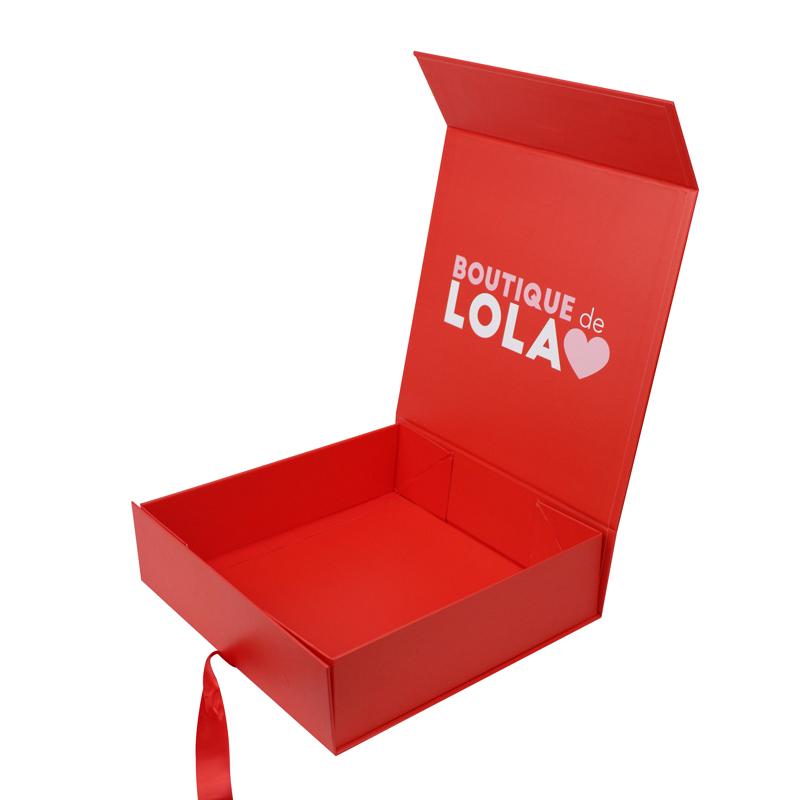 Op maat bedrukt rood magneetlint, opvouwbaar boekvormig papieren doosje