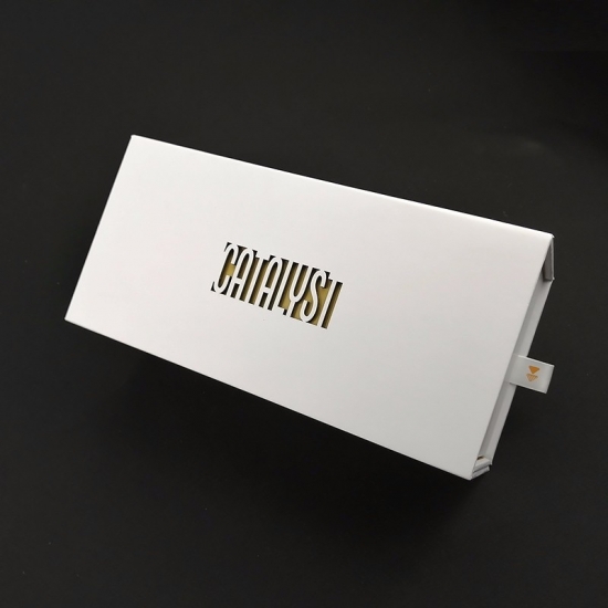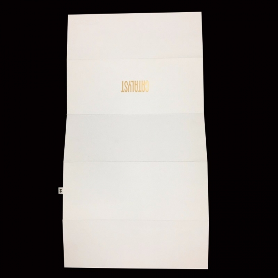 Gemaakt van speciaal papier + 2 mm grijs karton, geen opdruk aan de buitenkant, volledige bedrukking in steunkleur en logo-reliëf, gouden hot stamping.