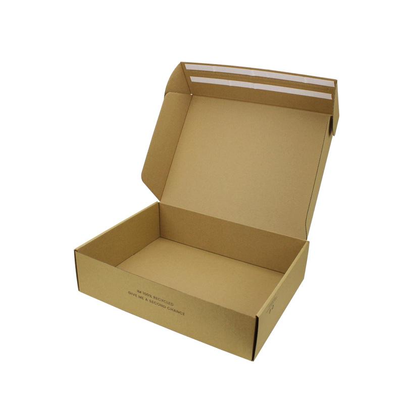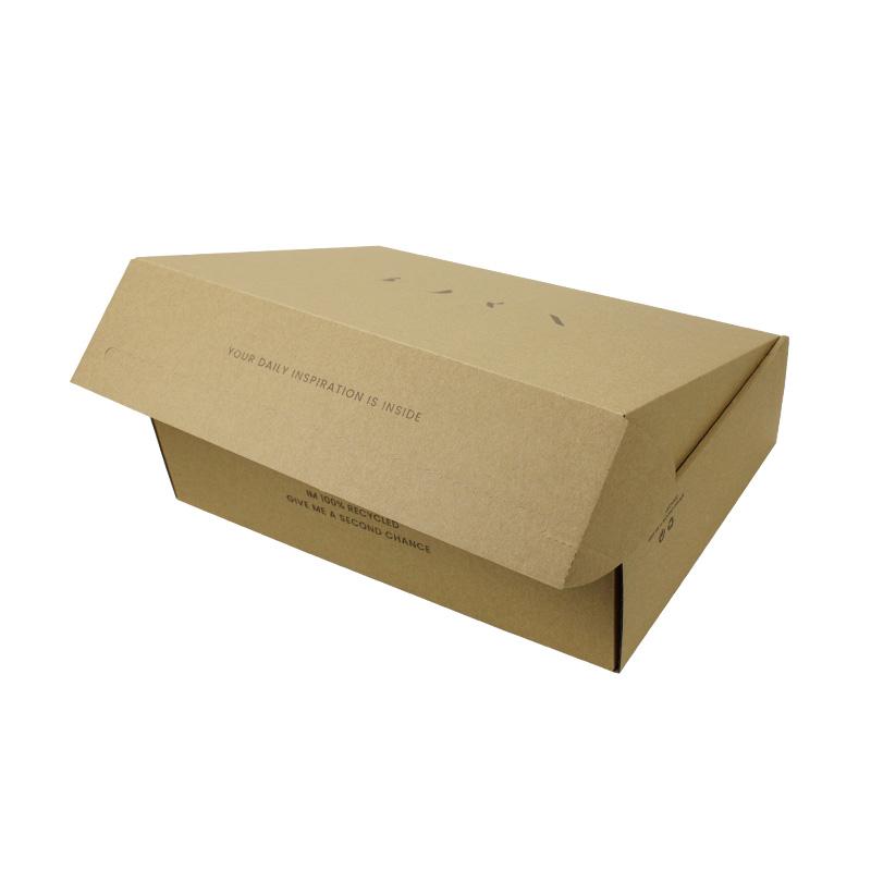 Dit is een E-commerce verzenddozen Gemaakt van stevig 3-laags golfpapier, bedrukt met het bedrijfslogo en andere informatie in het zwart. Het is een goedkopere optie dan CMYK-bedrukking. De doos kan worden gepersonaliseerd met elke gewenste kleur en behandeling. Raadpleeg onze productlijst voor meer kleuropties. gegolfde verzenddoos .