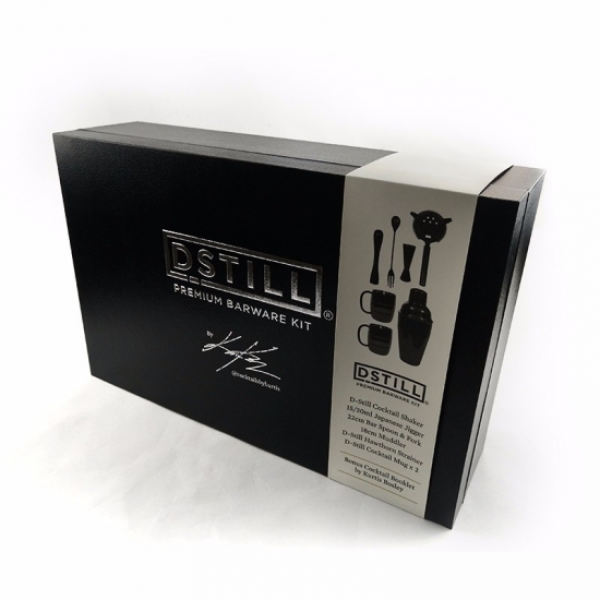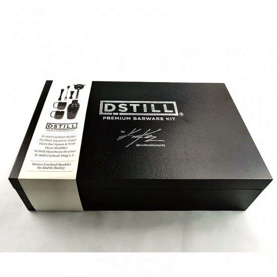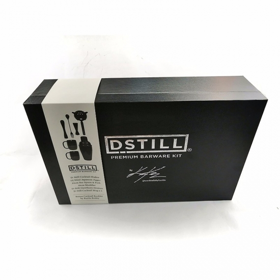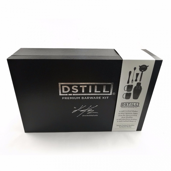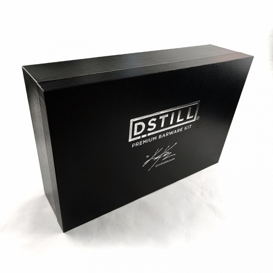 Unieke, op maat gemaakte, hoogwaardige, luxe zwarte wijnset in een geschenkdoos van karton, met papieren hoes en satijnen stof.