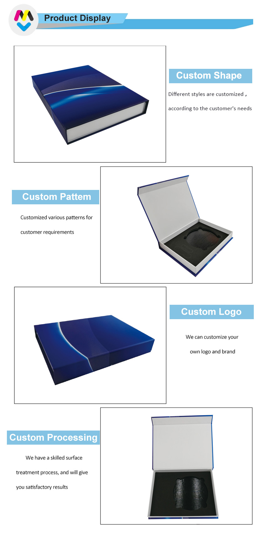 Blauwe magnetische verpakkingsdoos met klassieke uitstraling, mysterieus en elegant. Met hoogwaardige EVA-binnenvoering is personalisatie mogelijk. Geschikt voor allerlei soorten geschenkdozen, cosmetica, sieradendozen, enz.
