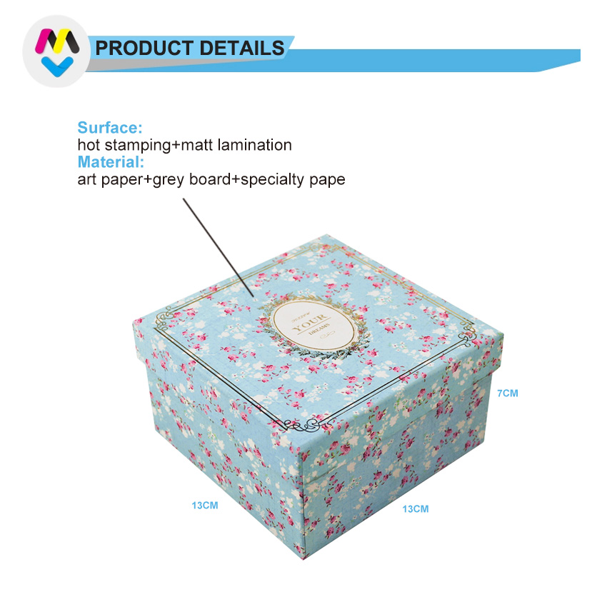 Normally 15-20 days after design/sampleAangepaste blauwe romantische bloemenpatroon geschenkdoos met deksel