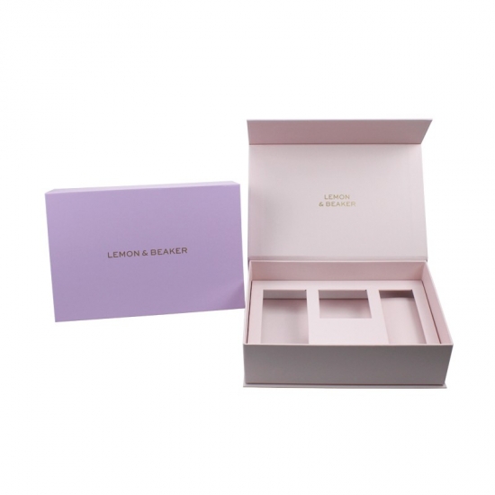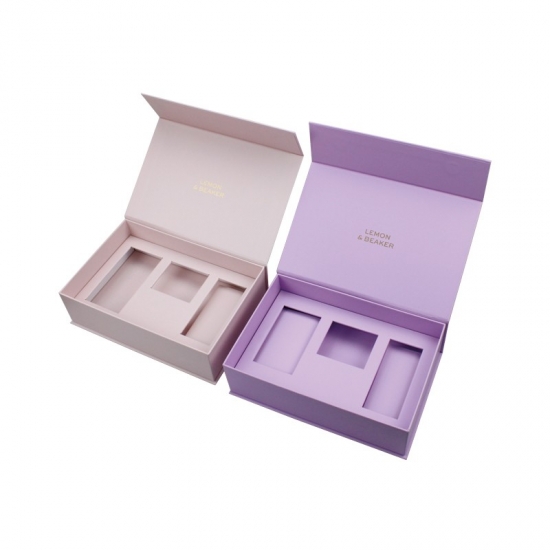 Dit is een roze geschenkdoos in de vorm van een clamshellboek met een kartonnen inleg, gemaakt van 157g C2S-kunstdrukpapier + 1200g grijs karton, matte afwerking, LOGO goudfolie stempelen, De grootte en vorm van het inzetstuk kunnen worden aangepast aan de wensen van de klant.