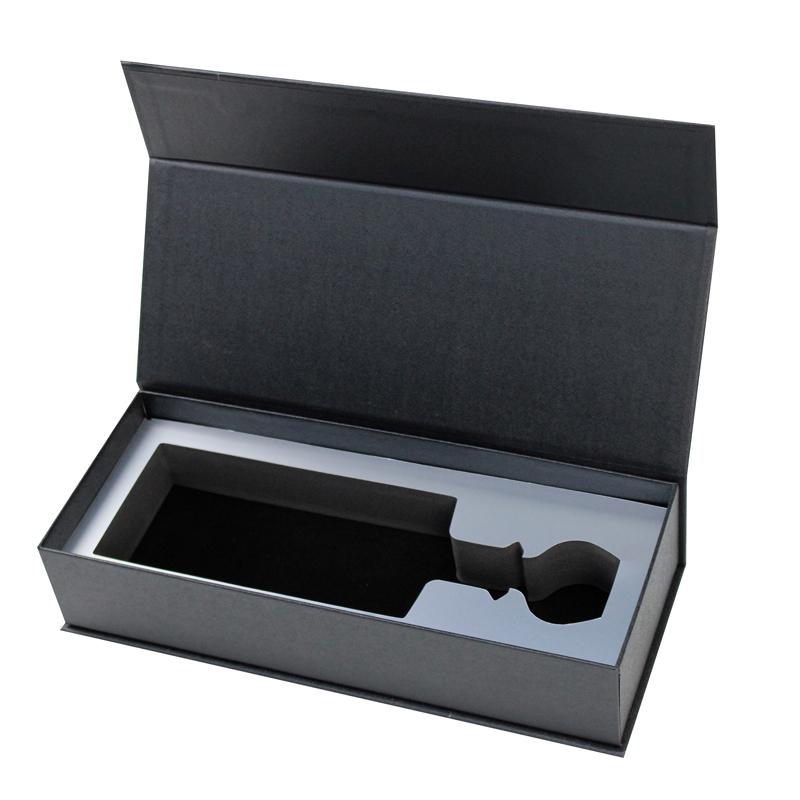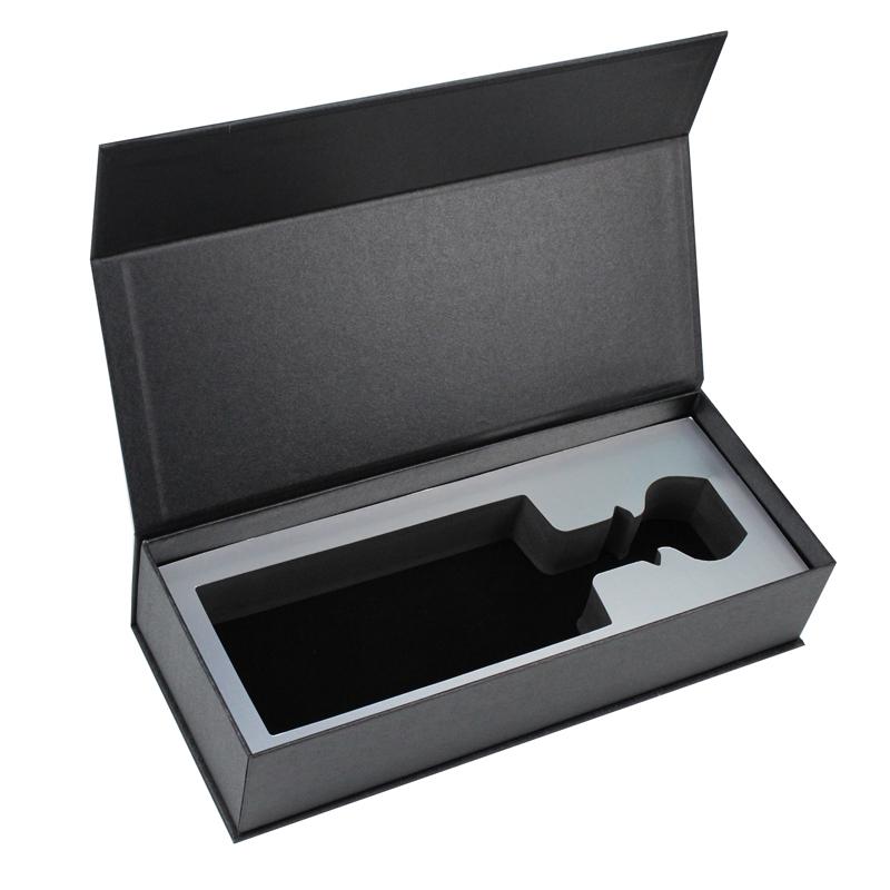 3. doos materiaal: 120 g/m² zwart speciaal papier + 2 mm grijs spaanplaat + EVA-schuim met zilverfolie + krachtige magneet