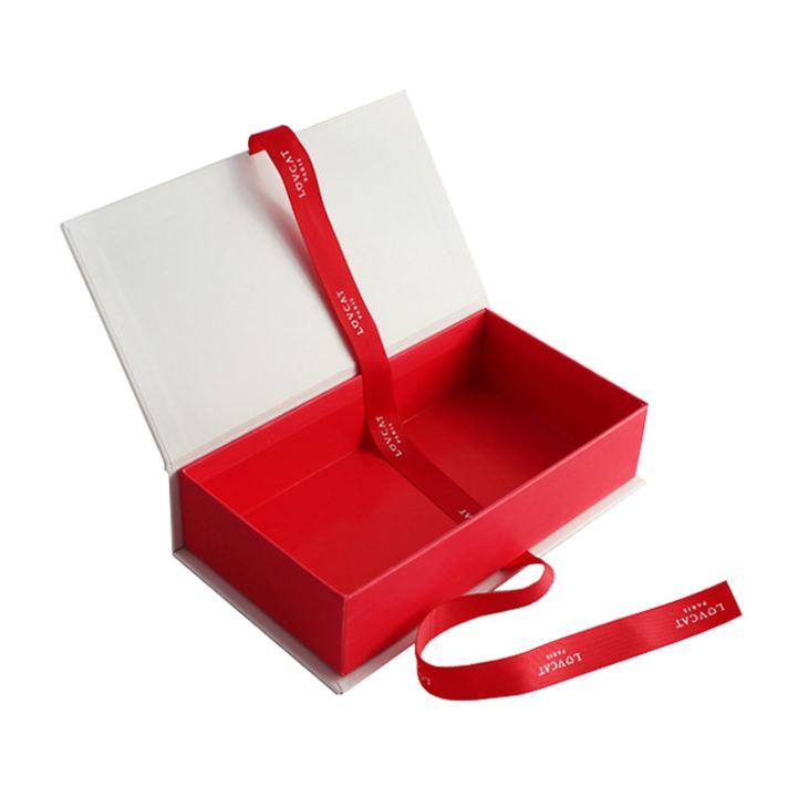 Met lint vastgemaakte doos met aangepast logo, maat, kleur en afwerking. Verdubbel de waarde van uw producten.