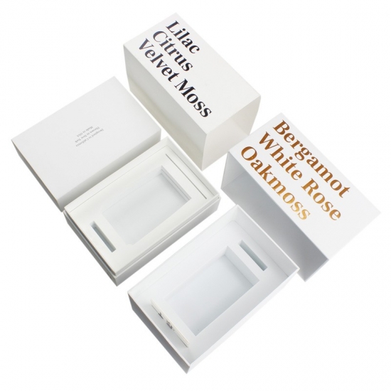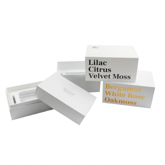 Dit is een op maat gemaakte kartonnen deksel en bodem van een kaars met goudfolie logo, gemaakt van 157g C2S-kunstdrukpapier + 1200g grijs karton. Aan de binnenkant is EVA-schuim gebruikt ter bescherming, dat wordt gevormd naar de grootte van het product.