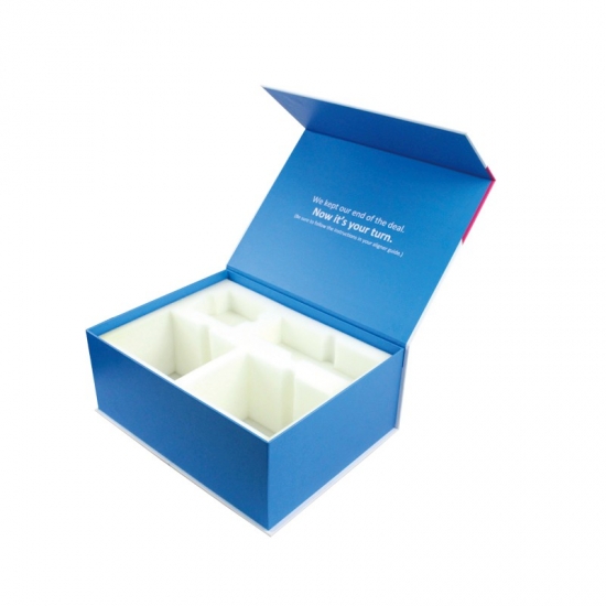 De magnetische geschenkdoos is gemaakt van 157 g/m² C2S-kunstdrukpapier, gelamineerd met 2,5 mm dik grijs karton. Het is een zeer magnetische geschenkdoos met kleurendruk en matte laminering. Het is kleurrijk en een modieuze look voor diverse cosmetische verpakkingen.