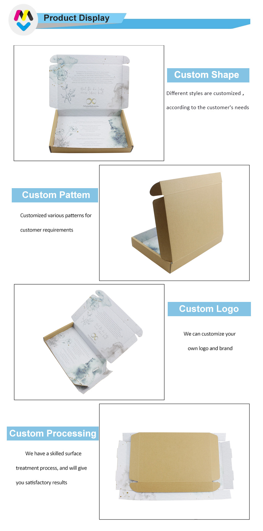 Opmerking: alle productfoto's die we op onze website hebben geplaatst, dienen slechts ter referentie om aan te geven wat voor soort verpakkingen we kunnen maken. Het betekent niet dat we dezelfde producten als op voorraad verkopen. We richten ons op maatwerk in elke maat/kleur, opdruk/structuur van papieren verpakkingen, enzovoort.