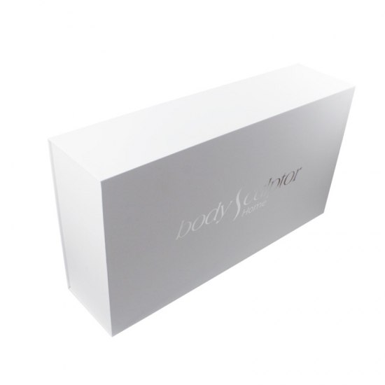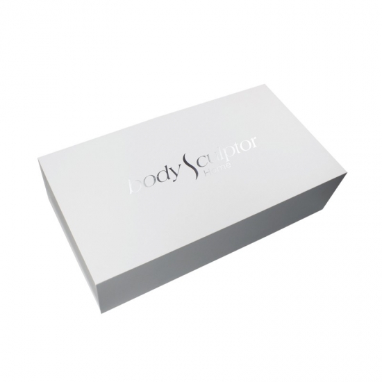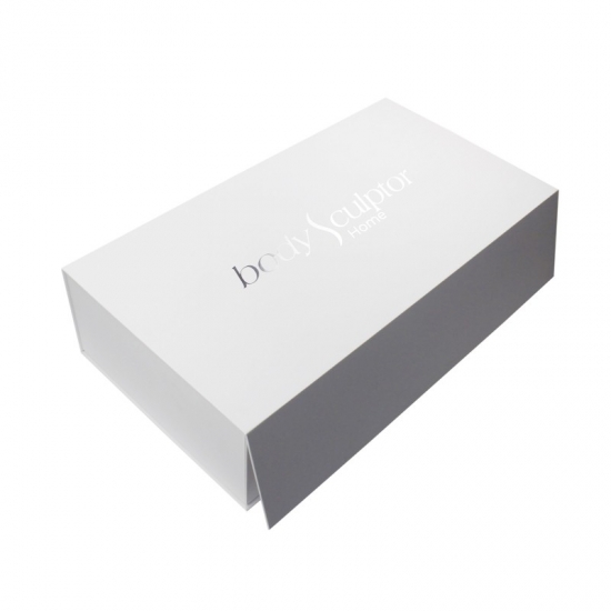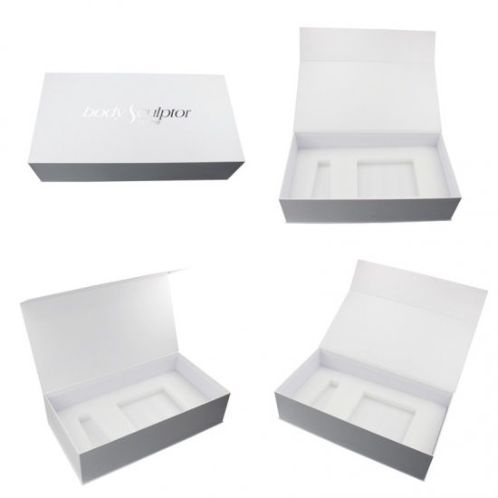 De witte gepersonaliseerde magnetische geschenkdoos is gemaakt van 157 g/m² C2S-kunstdrukpapier, gelamineerd met 2 mm grijs karton met parelmoer katoenen schuimondersteuning, aangepast in elke gewenste maat, kleur en logo, oppervlakteafwerking is mat gelamineerd met warmdruk. Afmeting: 53,5 * 33 * 14 cm.