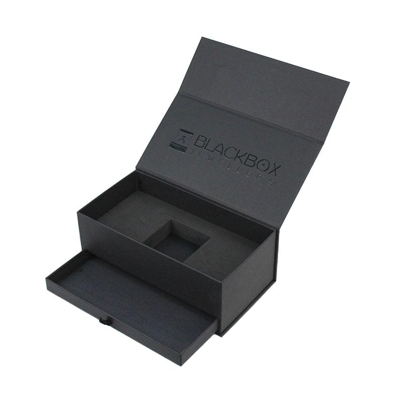 doos materiaal: 120 g/m² zwart papier, 1200 g dubbel grijs karton + krachtige magneten + linttrekker