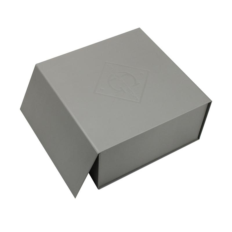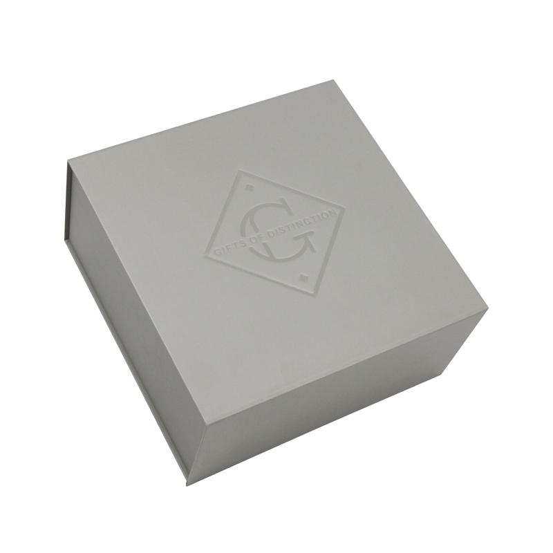 Onze eenvoudig in elkaar te zetten grijze magnetische geschenkdoos maakt indruk en verandert wat normaal gesproken een stompe verpakking is in een unieke, opvallende geschenkdoos.