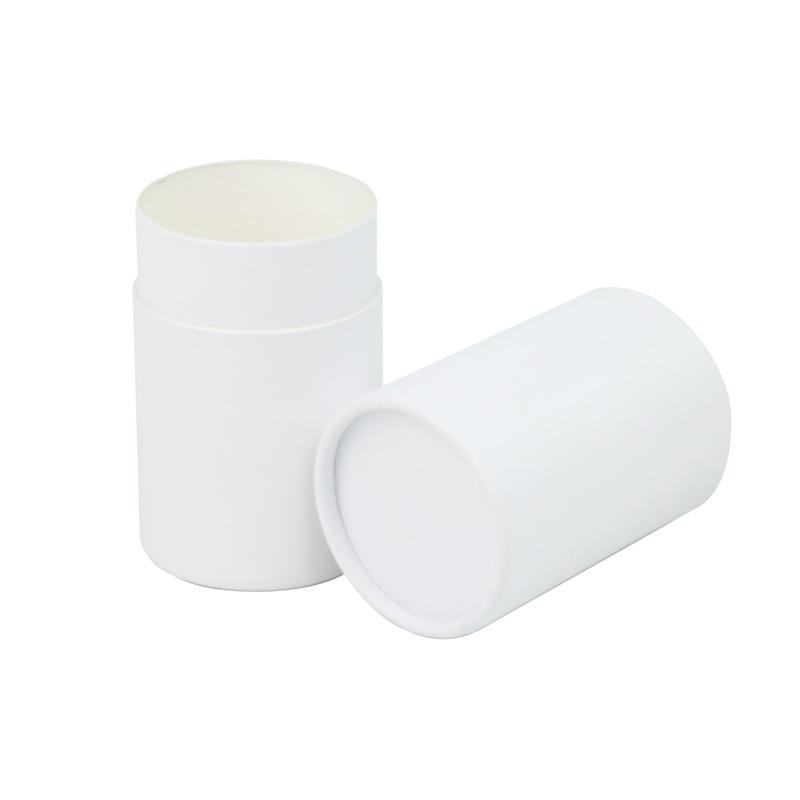 Modieus Papieren verpakkingsbuis Gemaakt van 157 g/m² kunstdrukpapier, gemonteerd op 1 mm dik stevig karton. Volledig witte doos met LOGO Spot-UV-coating. Elke kleur en afwerking mogelijk voor maatwerk.