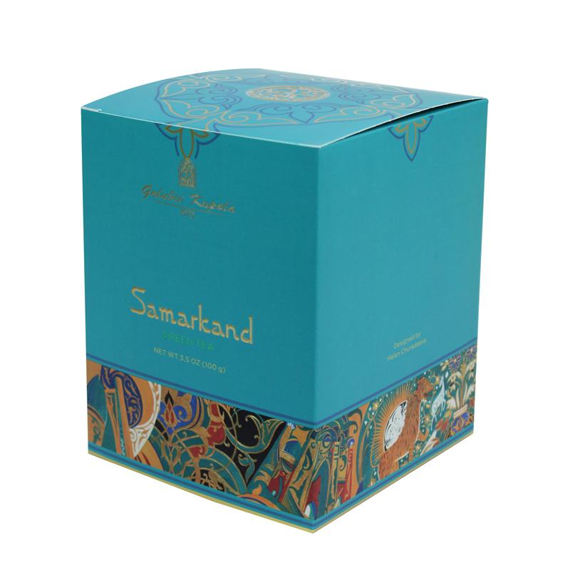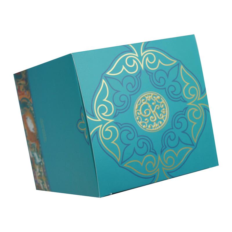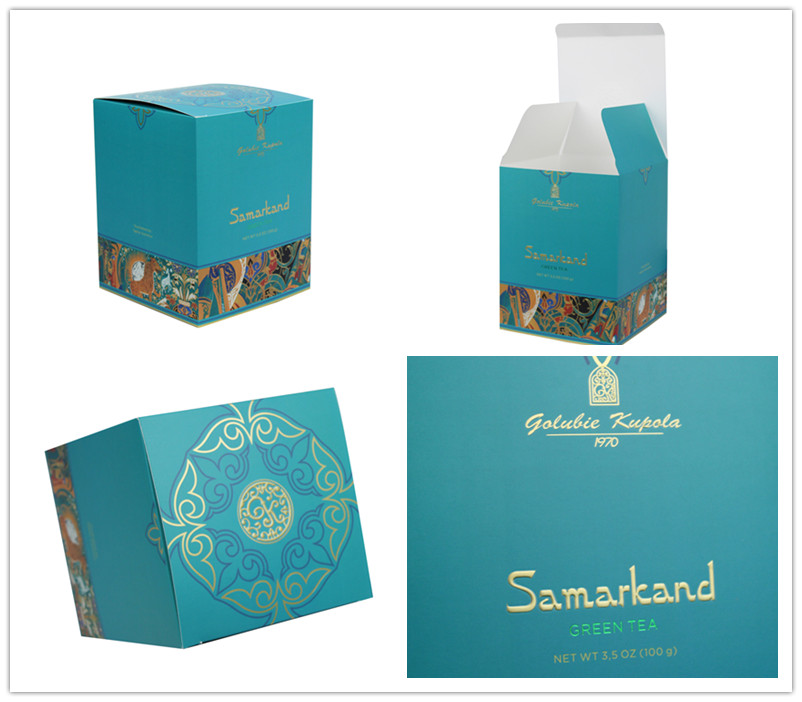Deze doos is gemaakt van 300 g/m² karton met een full colour print. De merknaam is duidelijk zichtbaar dankzij de reliëfdruk in goudfolie en de groene folie voor de theenaam. Alle soorten foliekleuren zijn beschikbaar voor unieke merkinformatie.