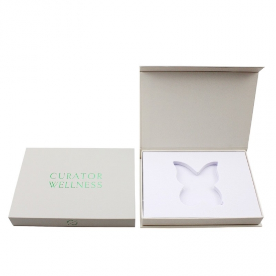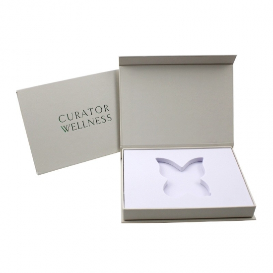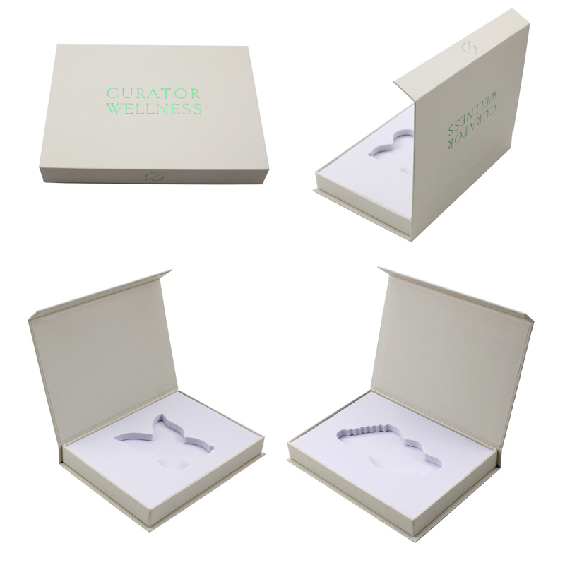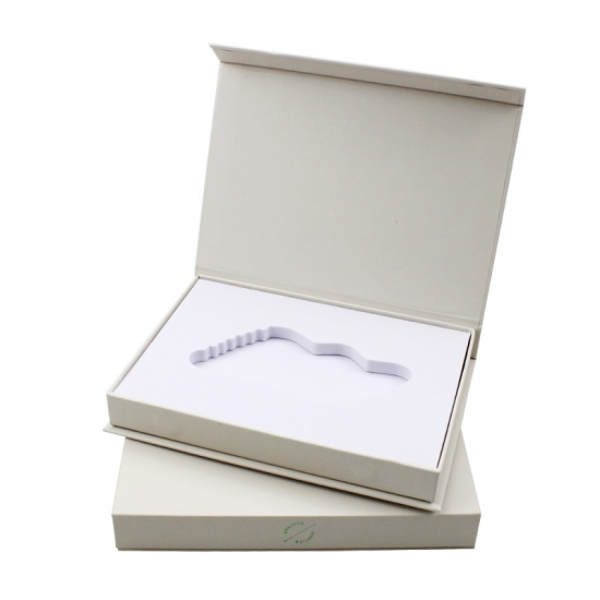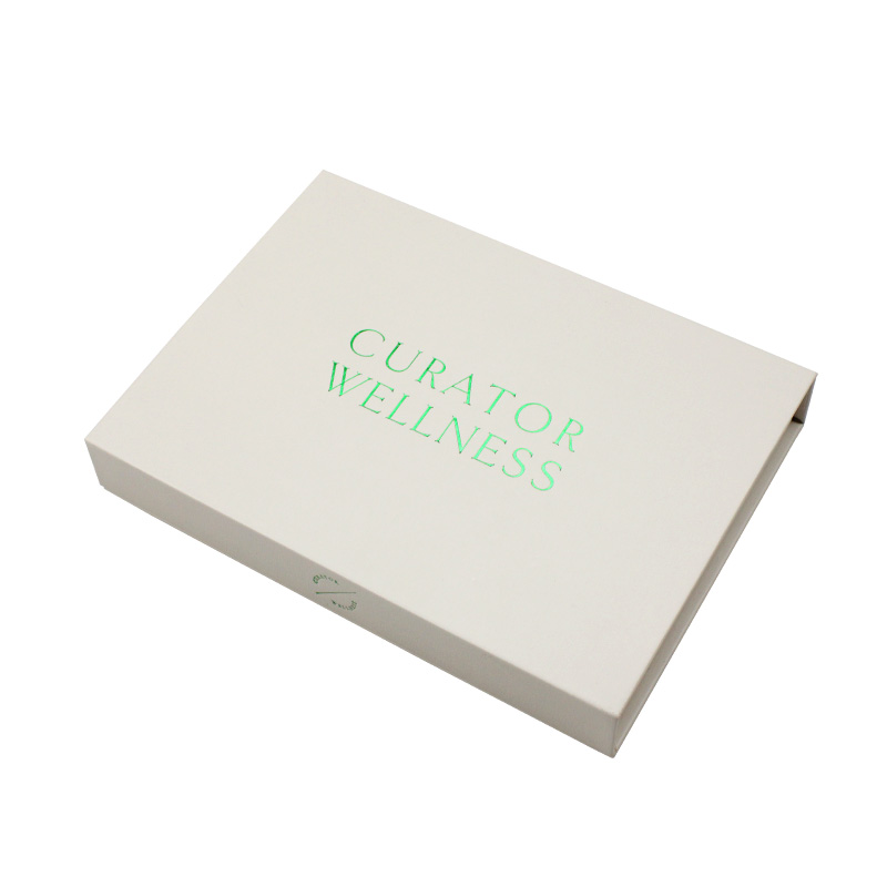 Dit is een geschenkdoos met klepdeksel wat maakte van speciaal papier en 2 mm grijs karton, het logo bovenop de doos is een groene foliedruk die meteen de aandacht van de klant trekt, de doos zit bekleed met EVA-schuim dat naar uw wens kan worden vormgegeven.