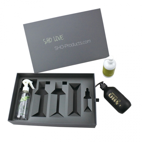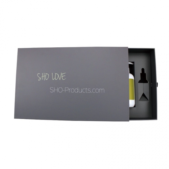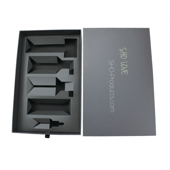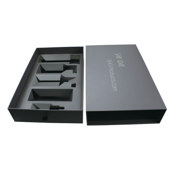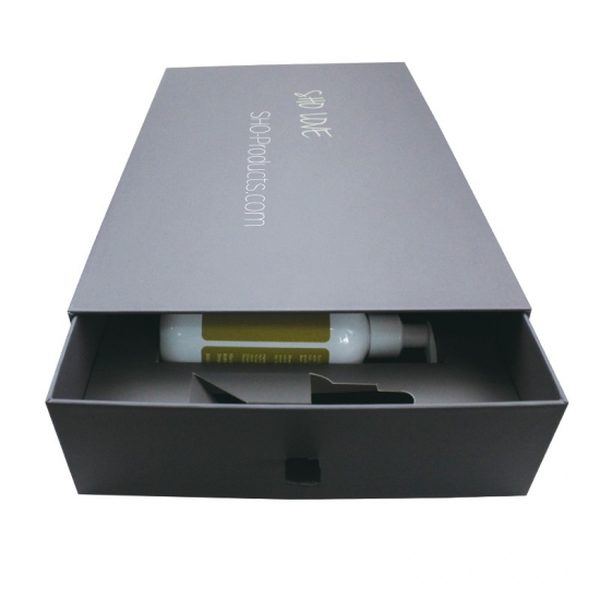 Het is een schuiflade geschenkverpakking met linttrekker wat maakte door 157g C2S kunstpapier + 1200g grijs karton ,binnenin de doos zitten verdelers gebruik goede kwaliteit karton dat gesneden en gevormd is naar de vorm van het product.