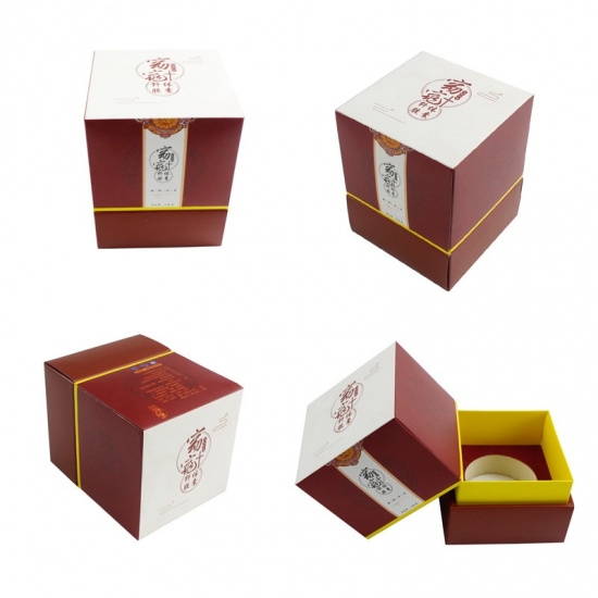 Dit is een vierkant doos met deksel wat maakte van C1S kunstdrukpapier + 1200g grijs karton, de hele doos vol met bedrukking met een gepersonaliseerde schuiminleg aan de binnenkant.
