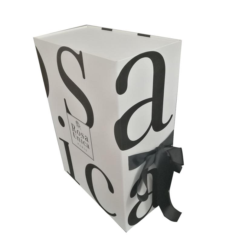 Grote witte geschenkdoos met lint, die veel klanten kiezen als geschenkverpakking. Mooi uiterlijk, besparing op transportkosten