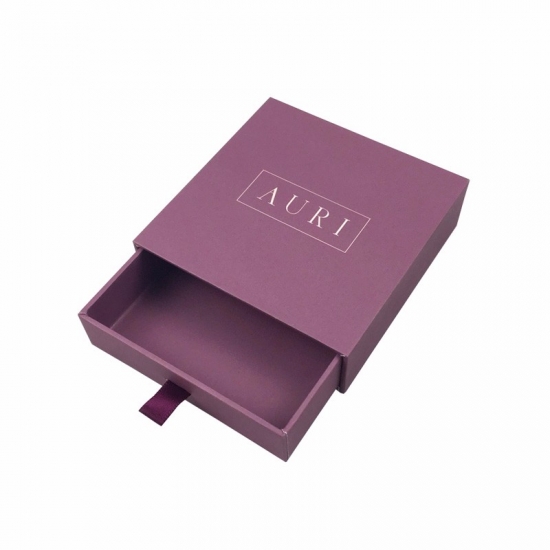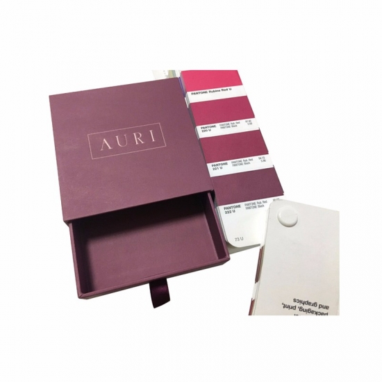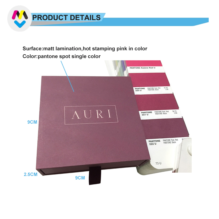 Personaliseer uw eigen unieke sieraden in pantonekleur, eenvoudige, modieuze kartonnen ladekasten, matte laminering, hete stempeling in roze en paarse kleur, gebruik pantonekleur.