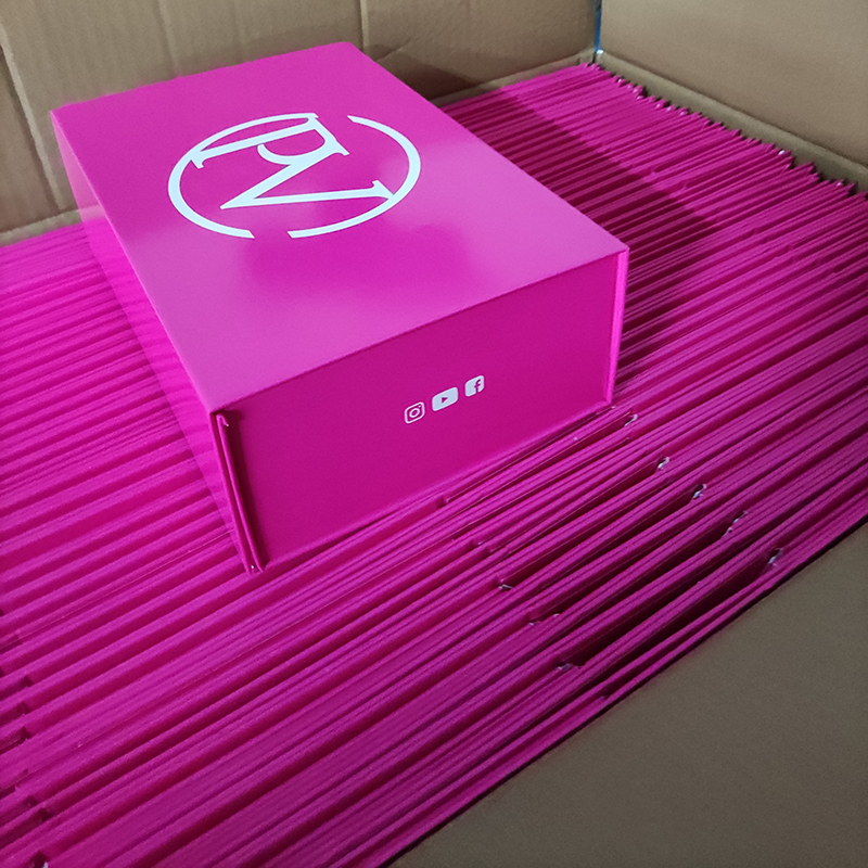 Volgens onze ervaring heb ik haar opvouwbare kartonnen dozen aanbevolen, omdat kartonnen vouwdozen We kunnen haar helpen met vlakke verzending, wat haar kan helpen verzendkosten te besparen. Wat betreft het ontwerp, overleggen we eerst met haar ideeën en adviseren we vervolgens over de kleur en het logo-ontwerp. Nadat het ontwerp is voltooid, bevestigen en passen we het ontwerp definitief aan, omdat we ervan overtuigd zijn dat onze professionele ervaring ervoor zorgt dat we de bestelling direct kunnen bevestigen zonder dat we een monster van een vouwdoos hoeven te maken. Nadat we het monster hadden bevestigd, voltooiden we de productie binnen twee weken en verzonden we de vouwdozen per vliegtuig.