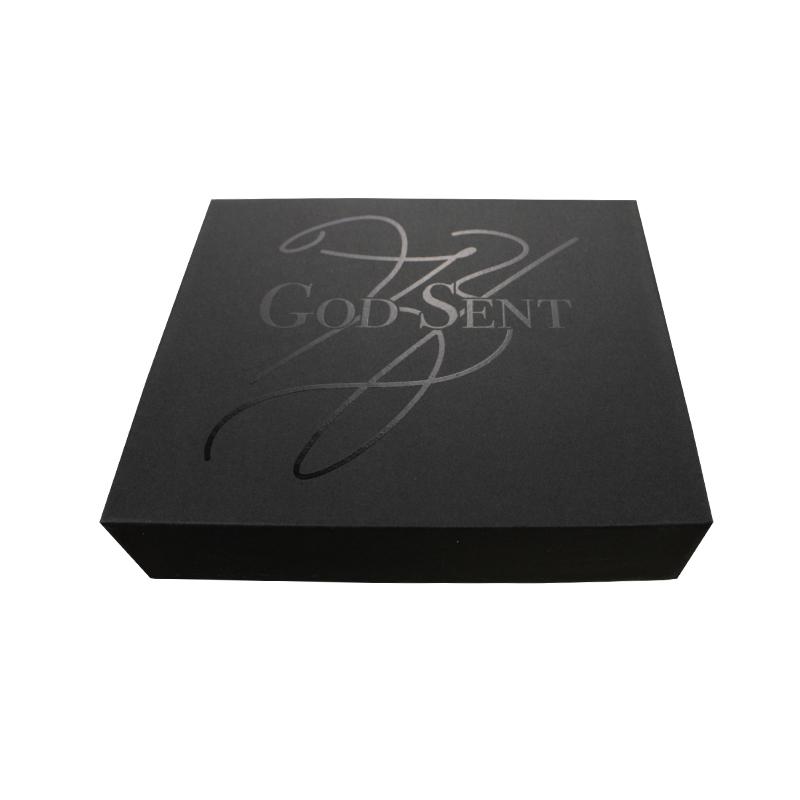 Dit is een hoogwaardige zwarte opvouwbare geschenkdoos met een gepersonaliseerd logo