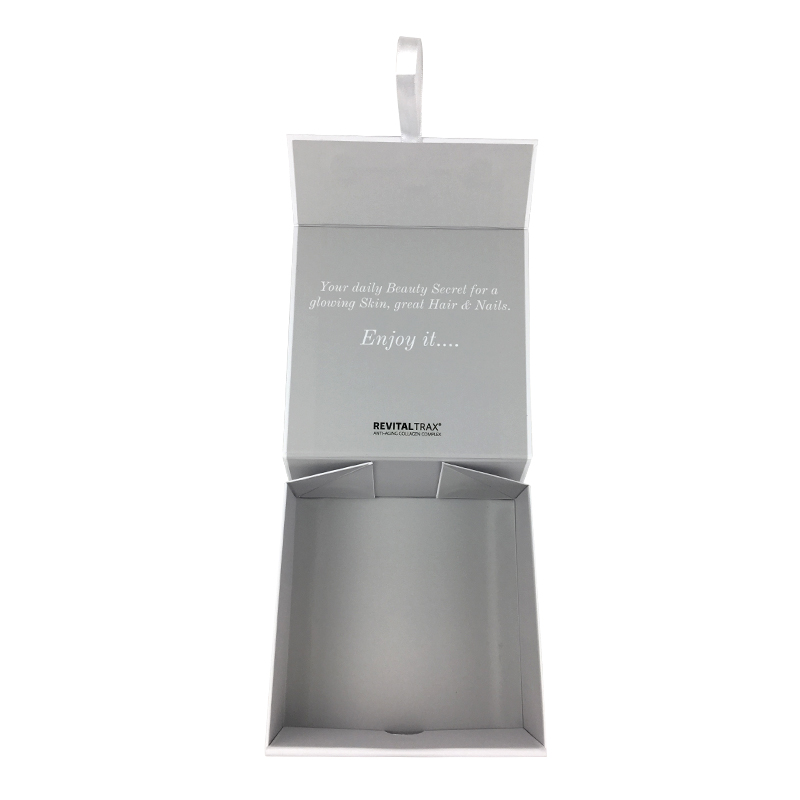 Dit is een opvouwbare magnetische geschenkdoos wat maakte gemaakt van 157g C2S-kunstdrukpapier + 1200g grijs karton, de binnendoos heeft een verstevigde klep uit één stuk. We kunnen de maat aanpassen aan uw wensen.