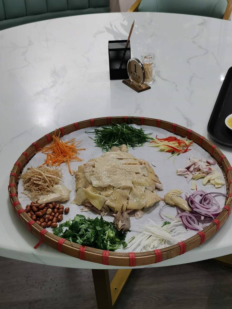 Na het drijven en het glaswerk hebben we het beroemde gerecht Qingyuan Chicken geproefd. Het is zo lekker dat de schaal zo snel leeg is.