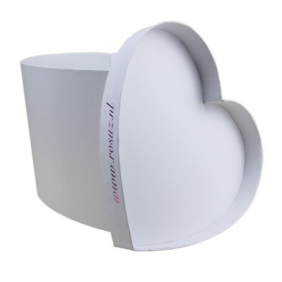 Een hoogwaardige hartvormige doos. Met deksel en een sneeuwwitte opdruk. Zeer decoratief en mooi, zeer geschikt voor stellen en voor het verpakken van bloemen.