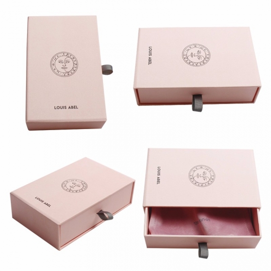 /Hoogwaardige speciale papieren roze sieraden op maat gemaakte ladeboxen
