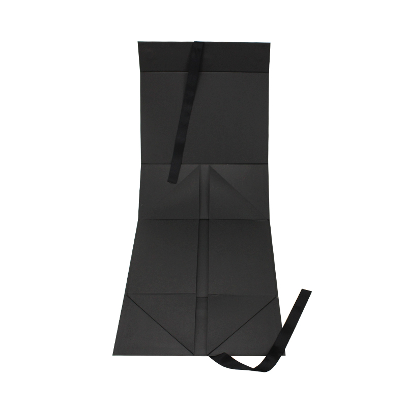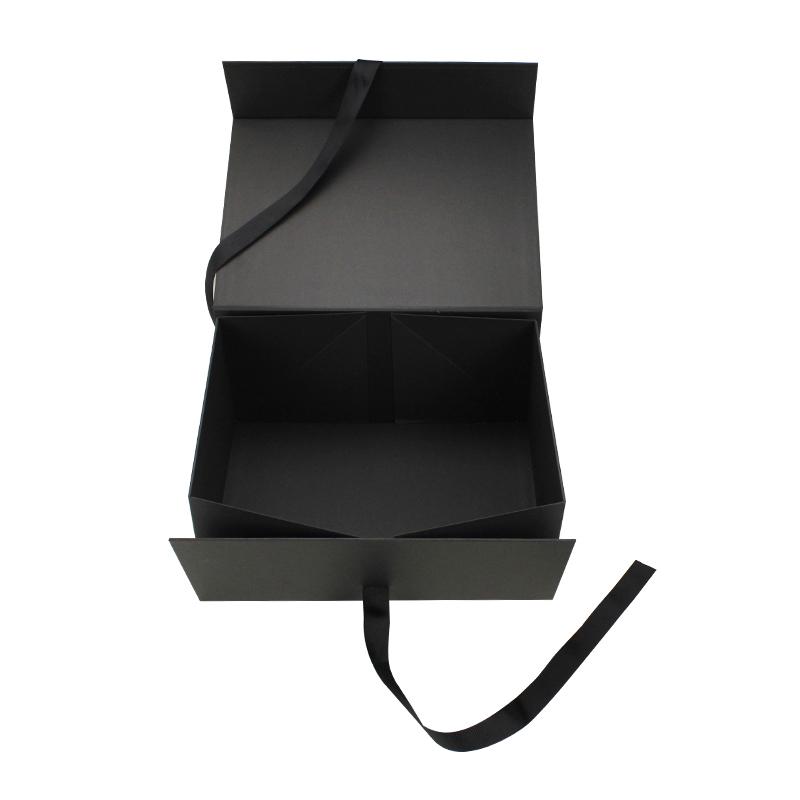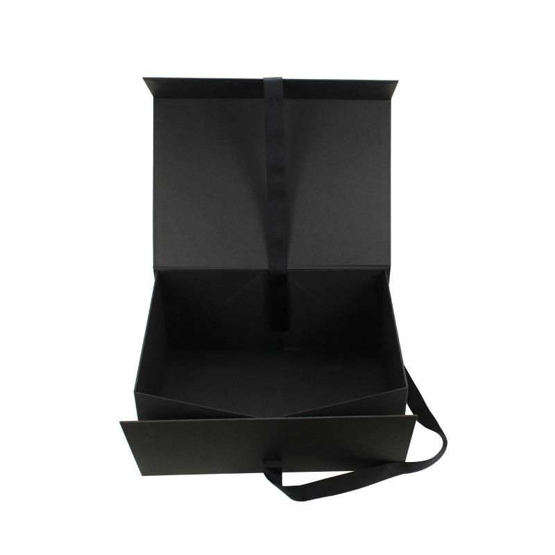 Luxe kartonnen magnetische opvouwbare geschenkdoos met lint, rechthoekige zwarte geschenkdoos