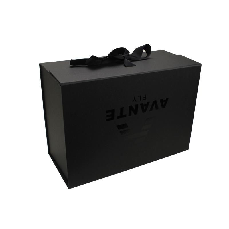 Guangzhou professionele groothandel op maat gepersonaliseerde zwarte opvouwbare geschenkdoos met lint 。