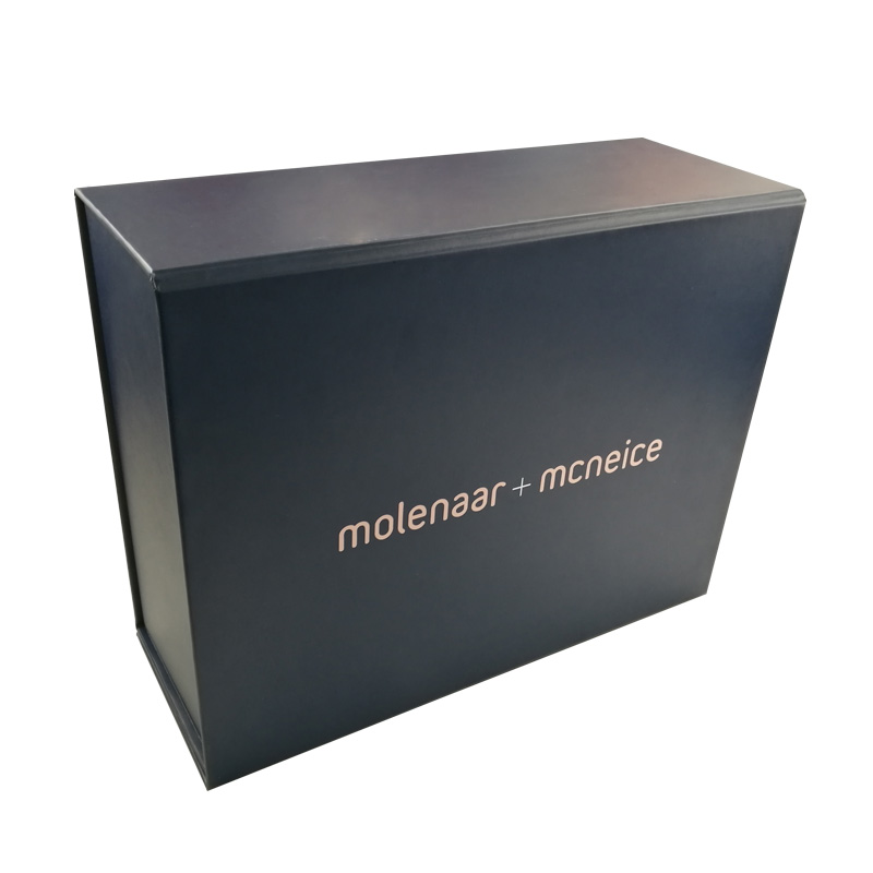 Dit is een witte matte blauwe vouwdoos wat maakte van C2S-kunstdrukpapier + 3 mm grijs karton, het logo aan de buitenkant van het deksel is voorzien van roze foliedruk, sterke dubbelzijdige kleefband op de vier hoeken. Het is een duurzame en stevige harde kartonnen doos.