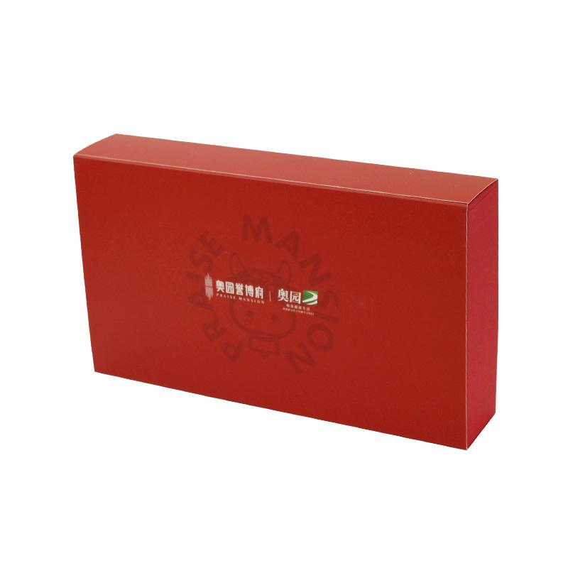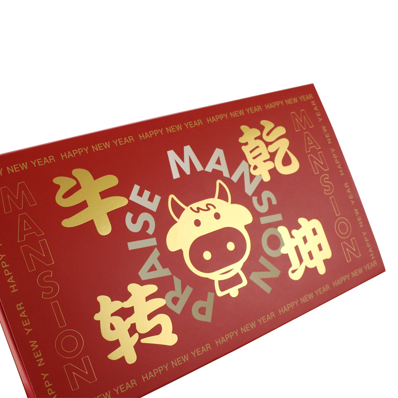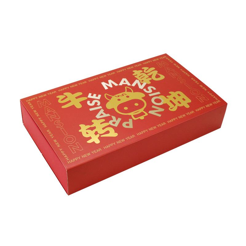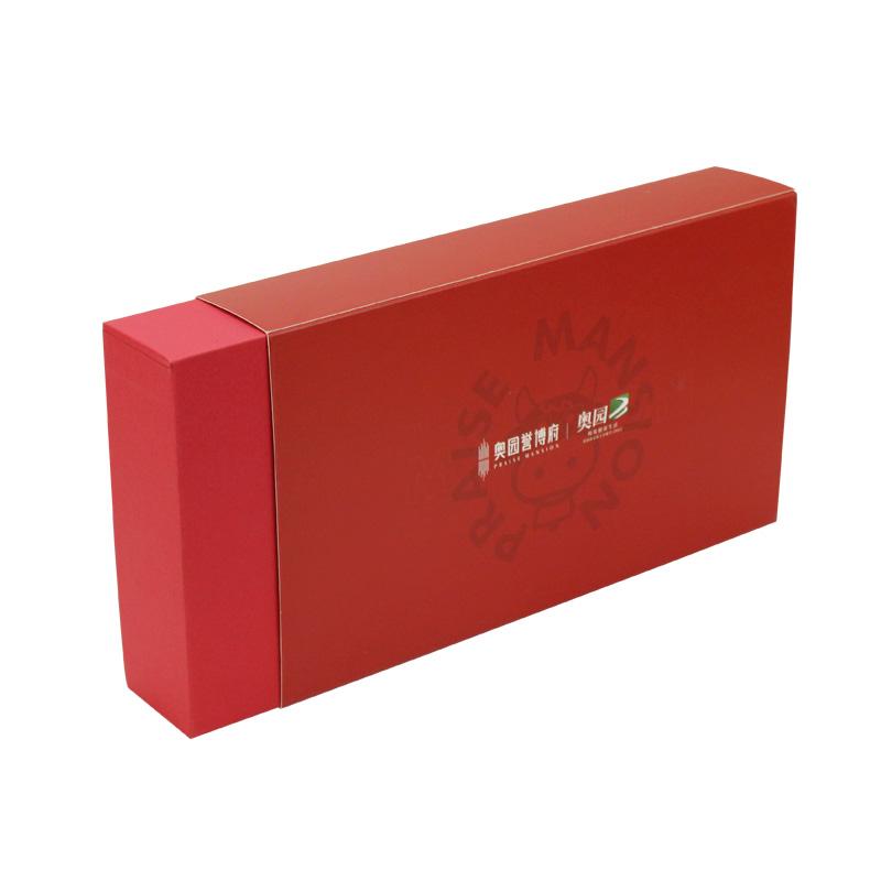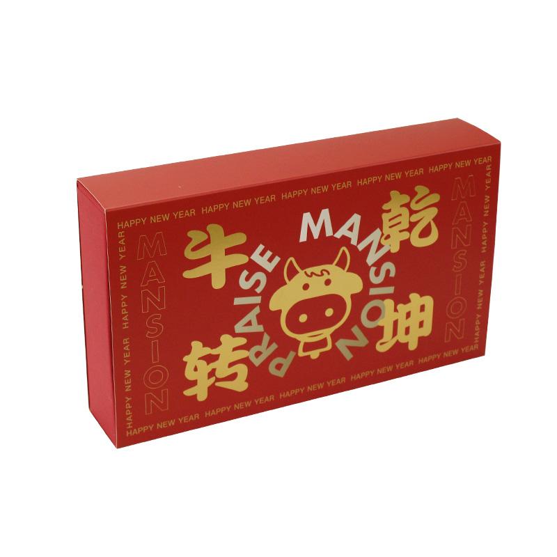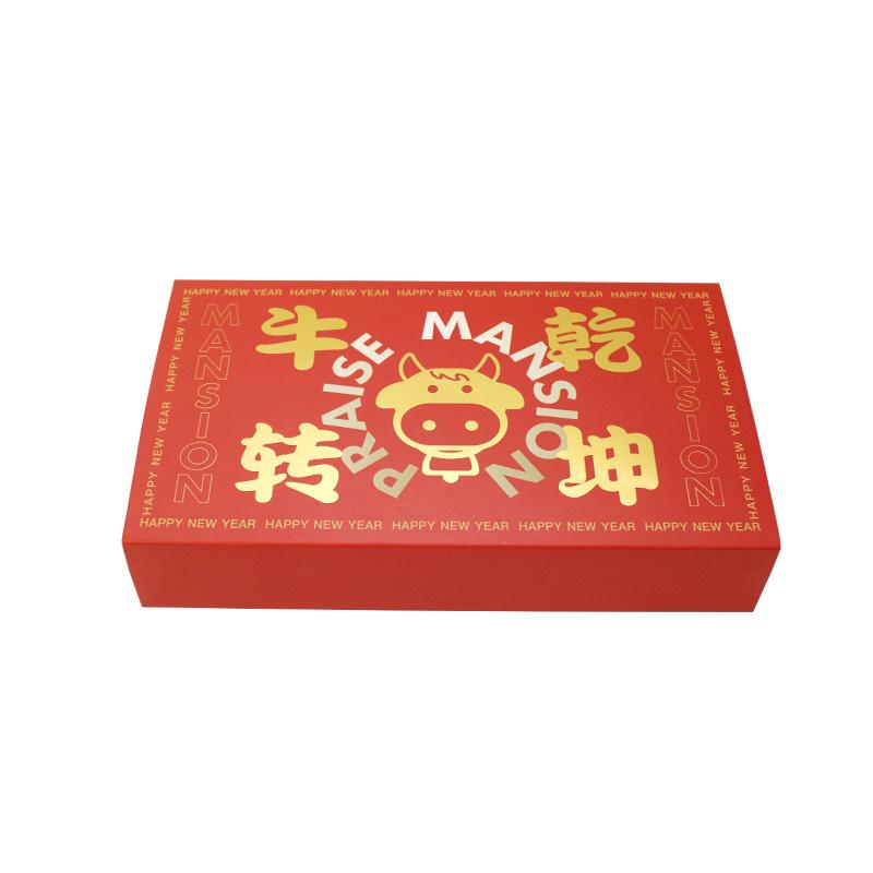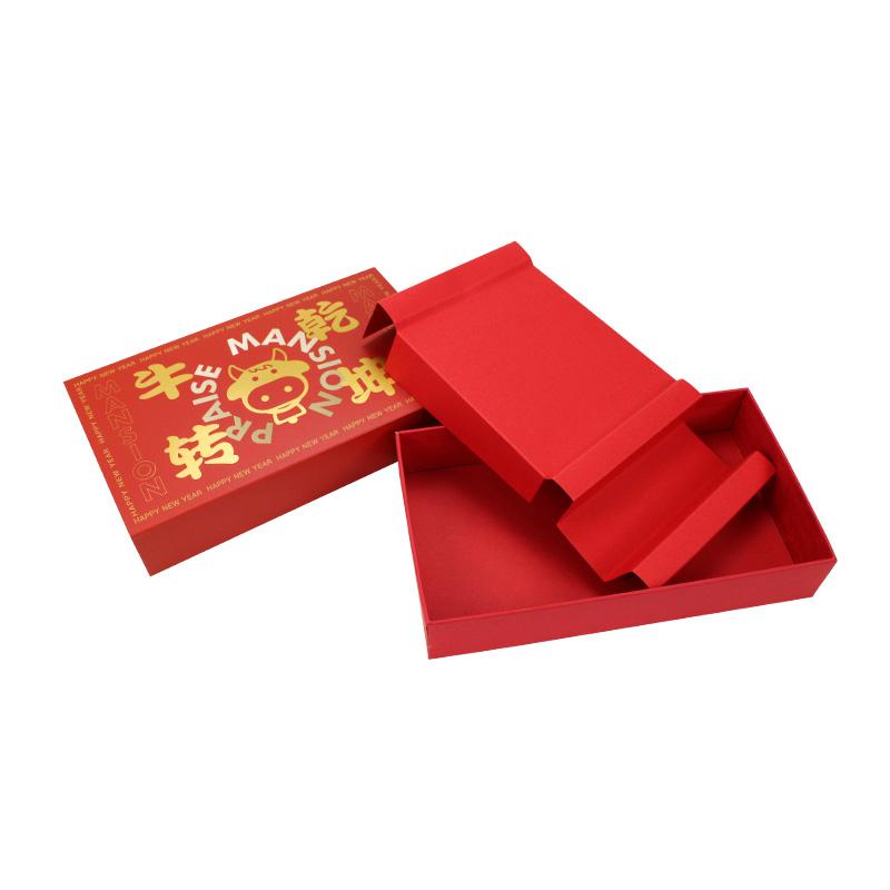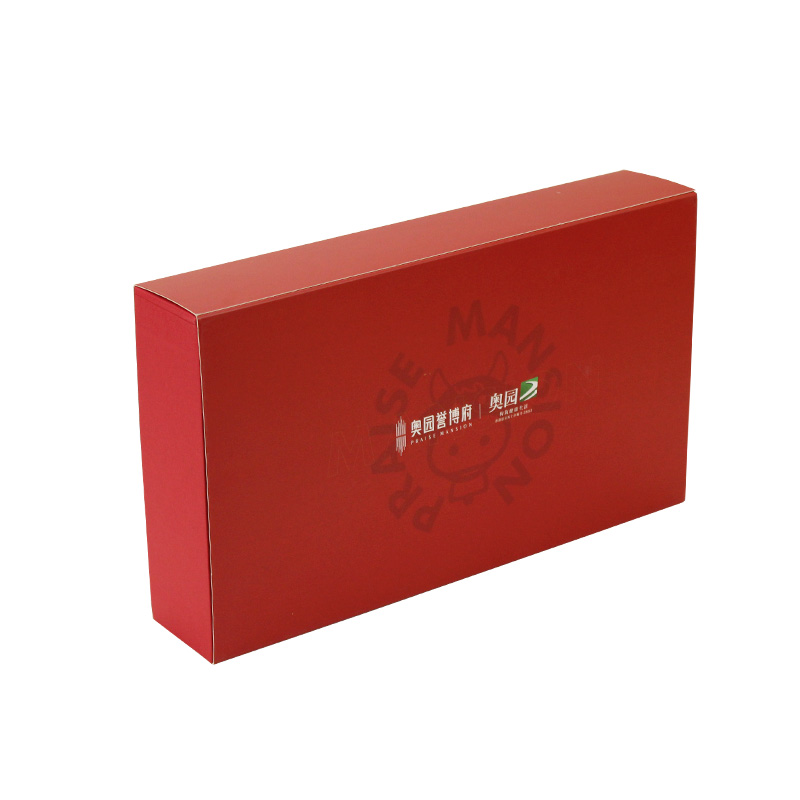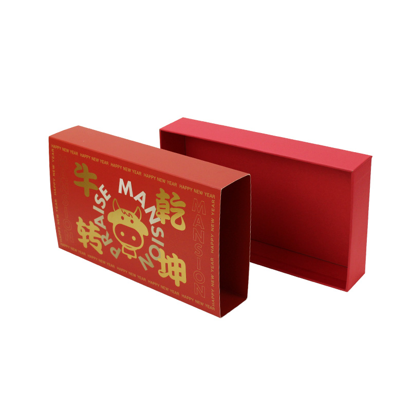 Het is een opvouwbare ladekast wat maakte door 350g gecoat enkelzijdig kunstpapier ,volledig bedrukt met rode kleuren op de gehele doos, met logo en tekst in gouden foliedruk.