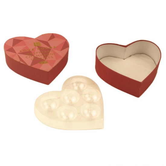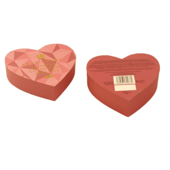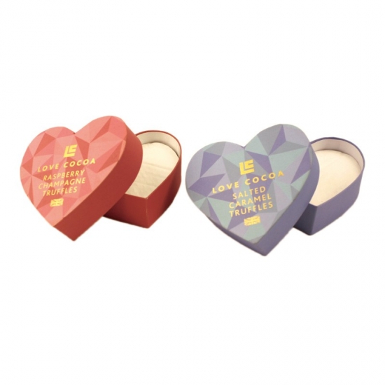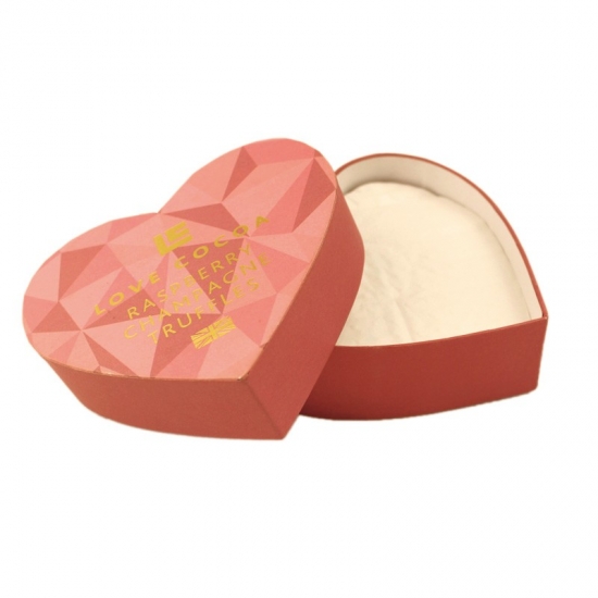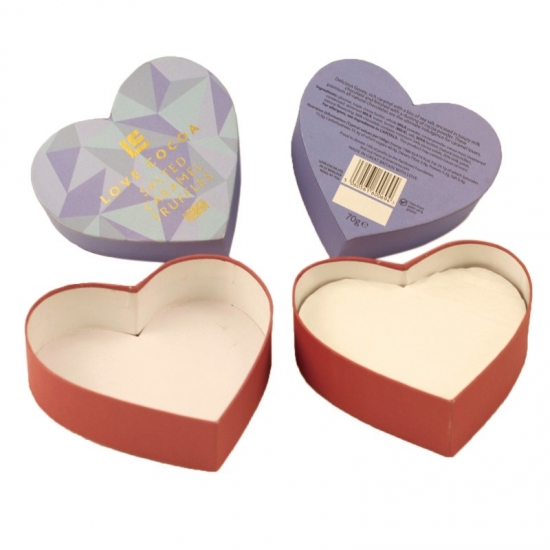 Dit is een klein formaat premium schattig paars/roze chocolade geschenkdoosje met deksel en bodem die gemaakt van 157g C2S-kunstdrukpapier + 1200g grijs karton, met aan de binnenkant een plastic blistervakje voor chocolade.