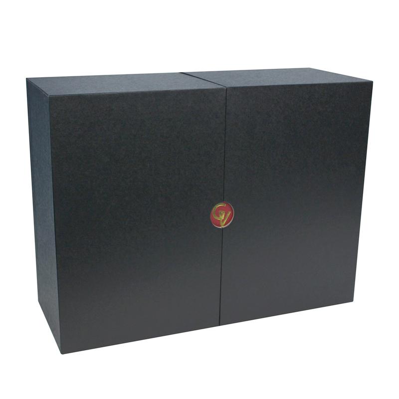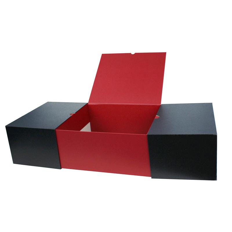 2) Materiaal: 11 0 g/m² zwart en rood structuurpapier gemonteerd 1200 g/m² massief grijs karton