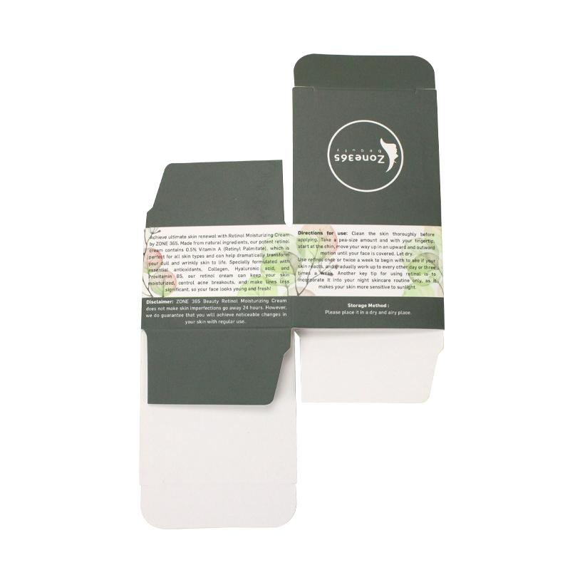 Dit is een cosmetische zachte kartonnen doos wat maakte door 350gsm gecoat enkelzijdig kunstpapier, buitenkant van de doos vol met tekst en logo-opdruk, inclusief instructies en barcode, binnenkant wit blanco zonder opdruk.
