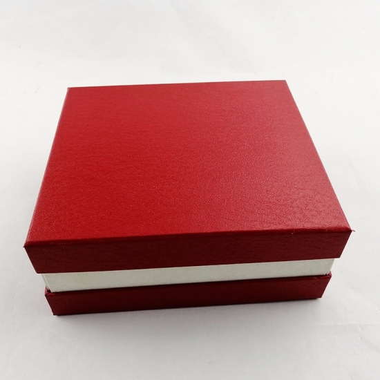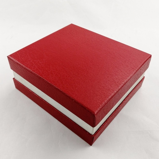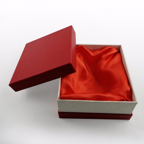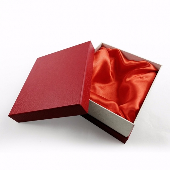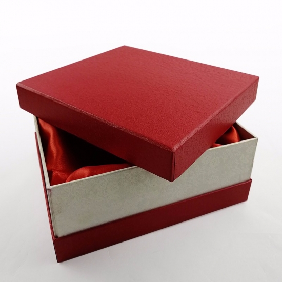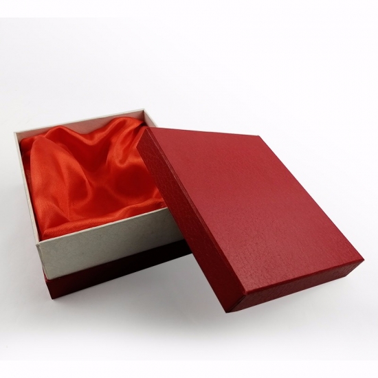 Dit is een luxe set rode deksel en bodemdoos wat maakte van speciaal rood papier + 1200g grijs karton en de voering past bij het satijn en schuim in de doos.