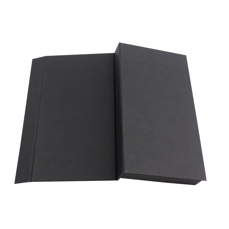 Dit is een zwarte doos magnetische deksel wat maakte van speciaal zwart papier + 2 mm grijs karton, buitenkant van de doos en binnenkant van de doos effen zwart, en het ontwerp kan op maat worden gemaakt volgens uw verzoek.