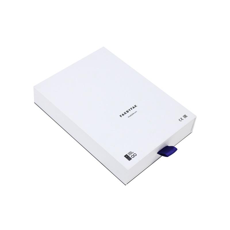 doos materiaal: 157 g/m² kunstpapier, 1200 g dubbelgrijs karton + linttrekker