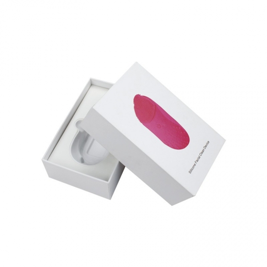 Dit is een rechthoekige, witte, glanzende geschenkdoos met een deksel met grafisch patroon. wat maakte door 157g C2S kunstpapier + 1200g grijs karton Binnenin de doos bevindt zich een plastic blisterinzetstuk dat op basis van de producten wordt gevormd .