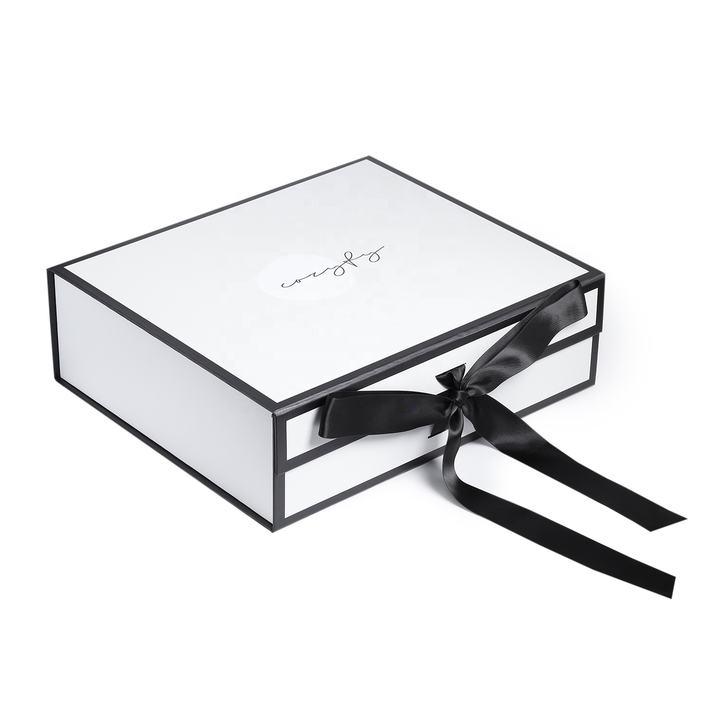 Normally 15-20 days after design/sampleWitte opvouwbare geschenkdoos met lint