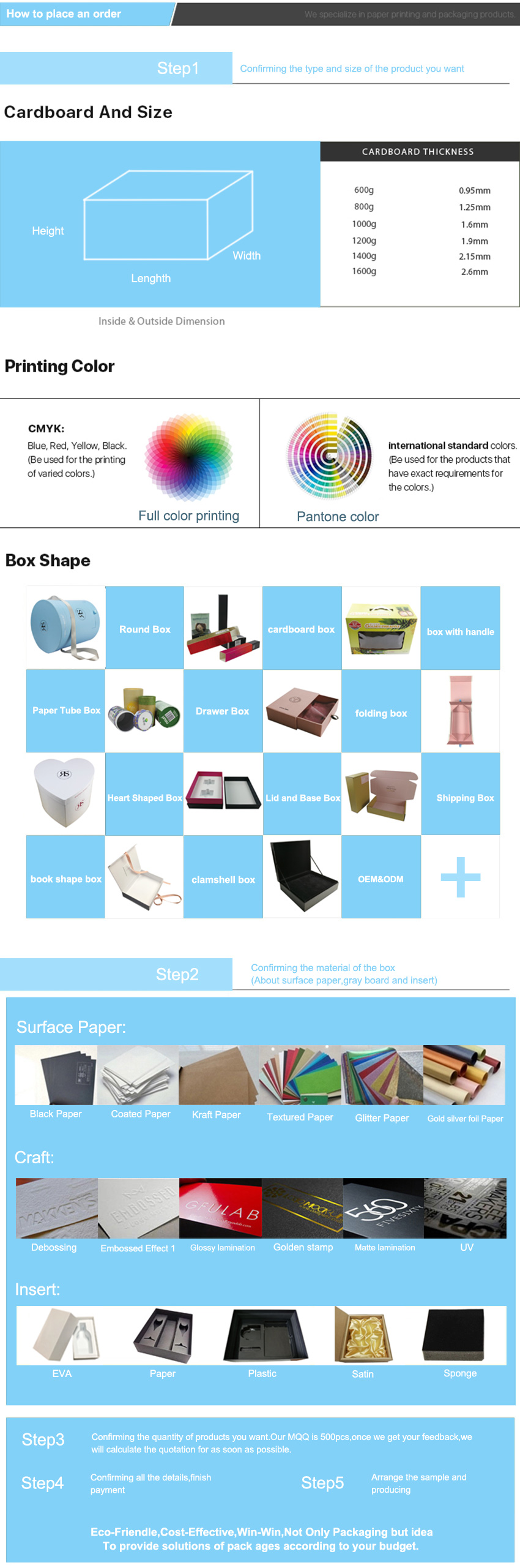 5). Optie: Glanzende en matte laminering; Glinsterende kracht; Gouden/zilveren hot-stamping; UV-coating; Zeefdruk; Reliëf en debossing; Glanzende vernis